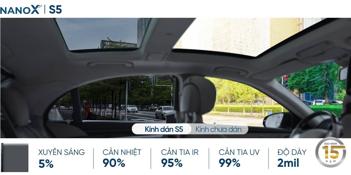 Cản nhiệt cao: Mã phim NanoX S15, S5 loại bỏ hơn 85% nhiệt lượng truyền qua kính. Điều này ngăn chặn đáng kể sự xâm nhập của nắng nóng vào khoang nội thất. Từ đó, giảm cảm giác hầm bí, khó chịu, giữ trạng thái thư giãn, mát mẻ cho người ngồi hàng ghế sau.